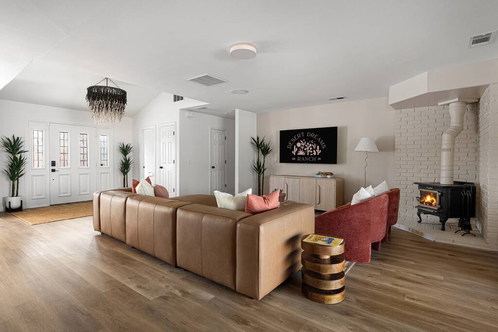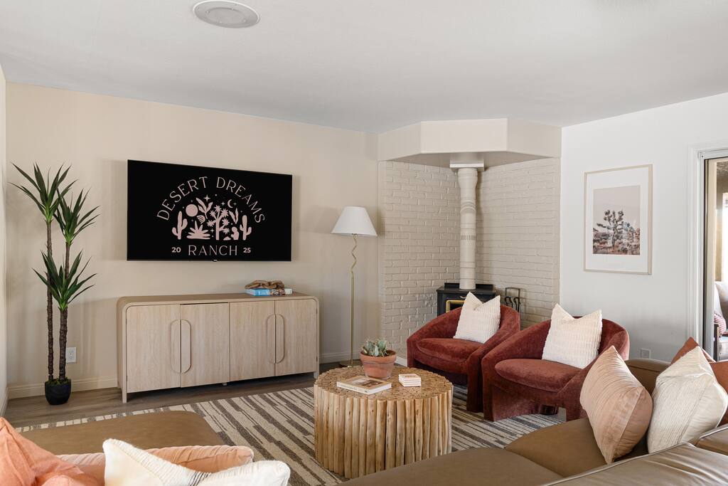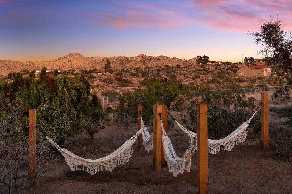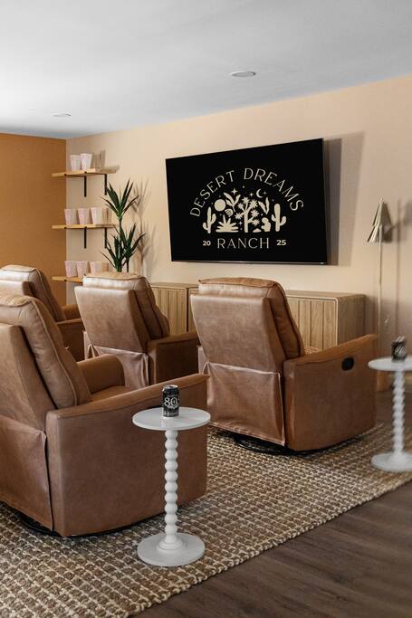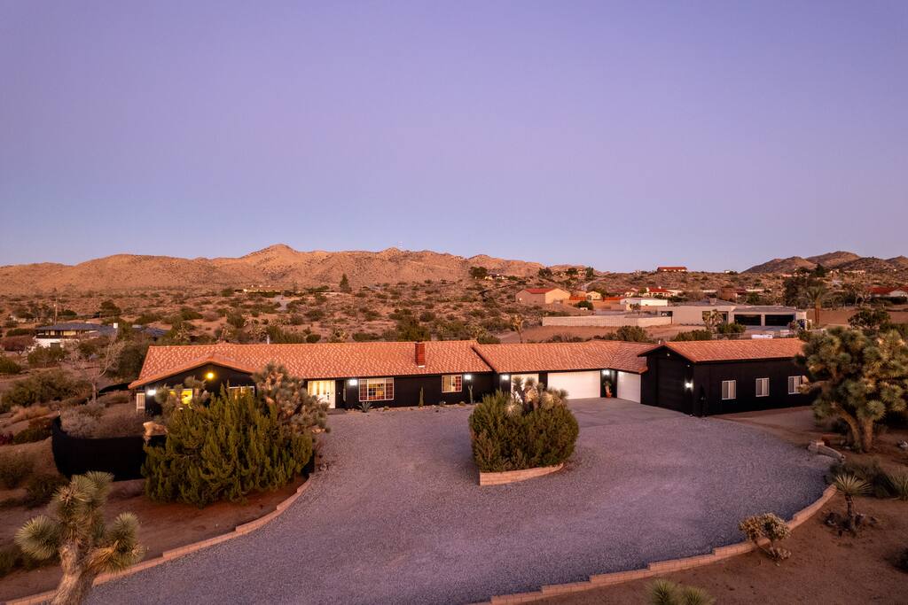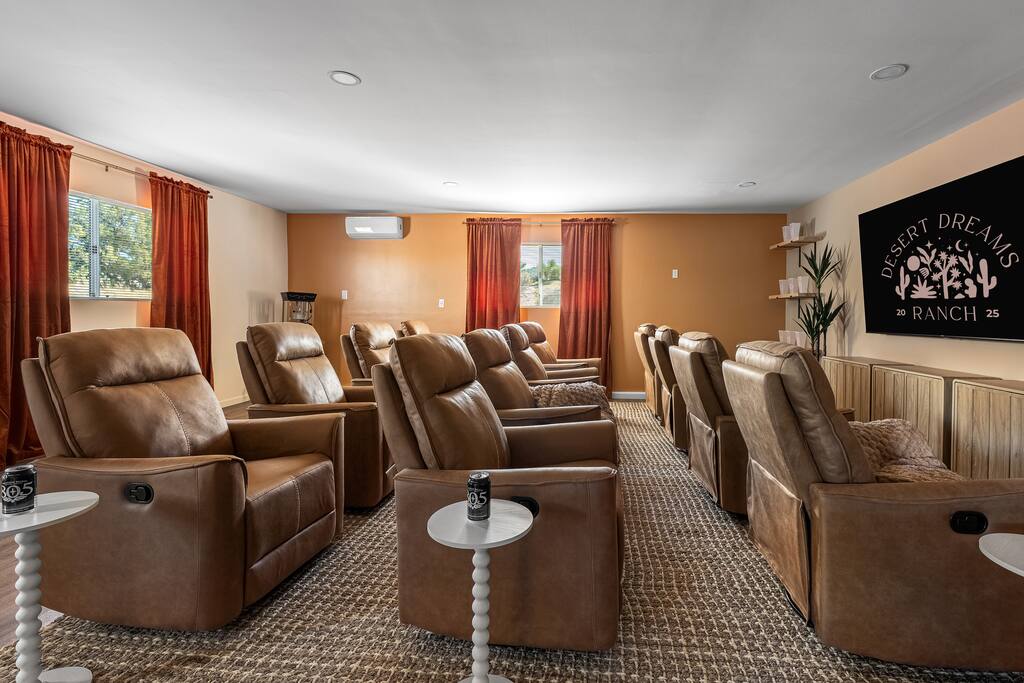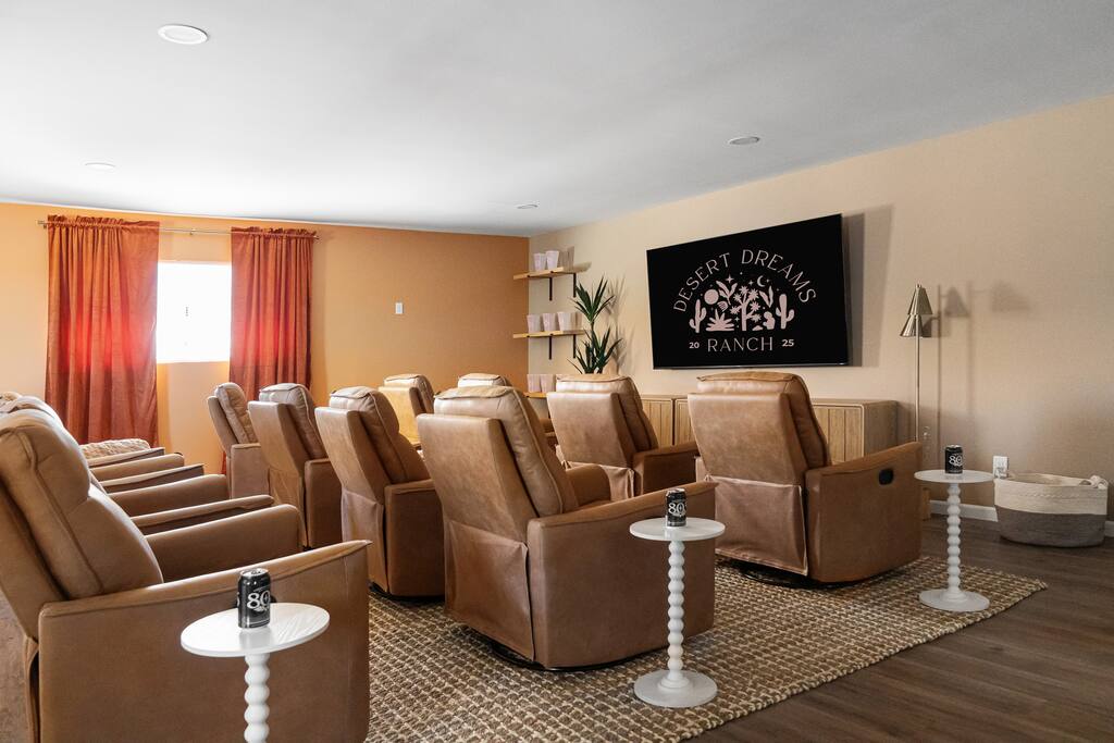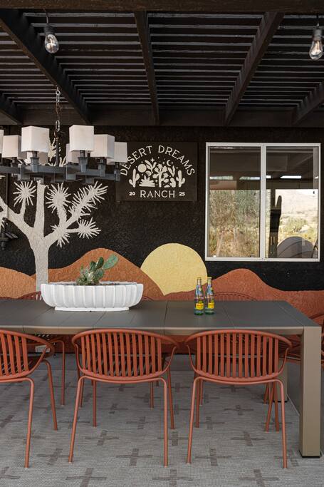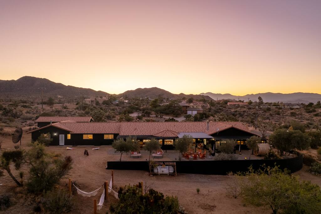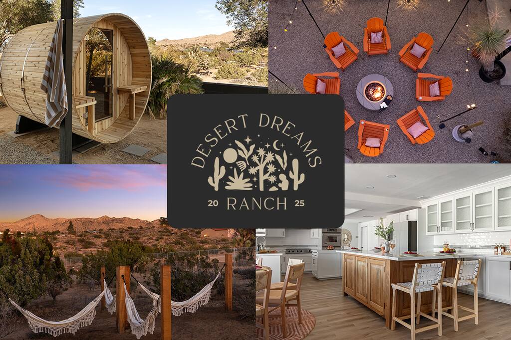 Welcome to Desert Dreams Ranch, a private 3+ acre Joshua Tree getaway just 5 minutes from trailheads. Relax in the hot tub and sauna, lounge on outdoor daybeds, or dine under the stars. Inside, enjoy a theater room, game room, and gym. The perfect blend of comfort, adventure, and desert serenity.
