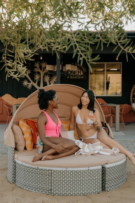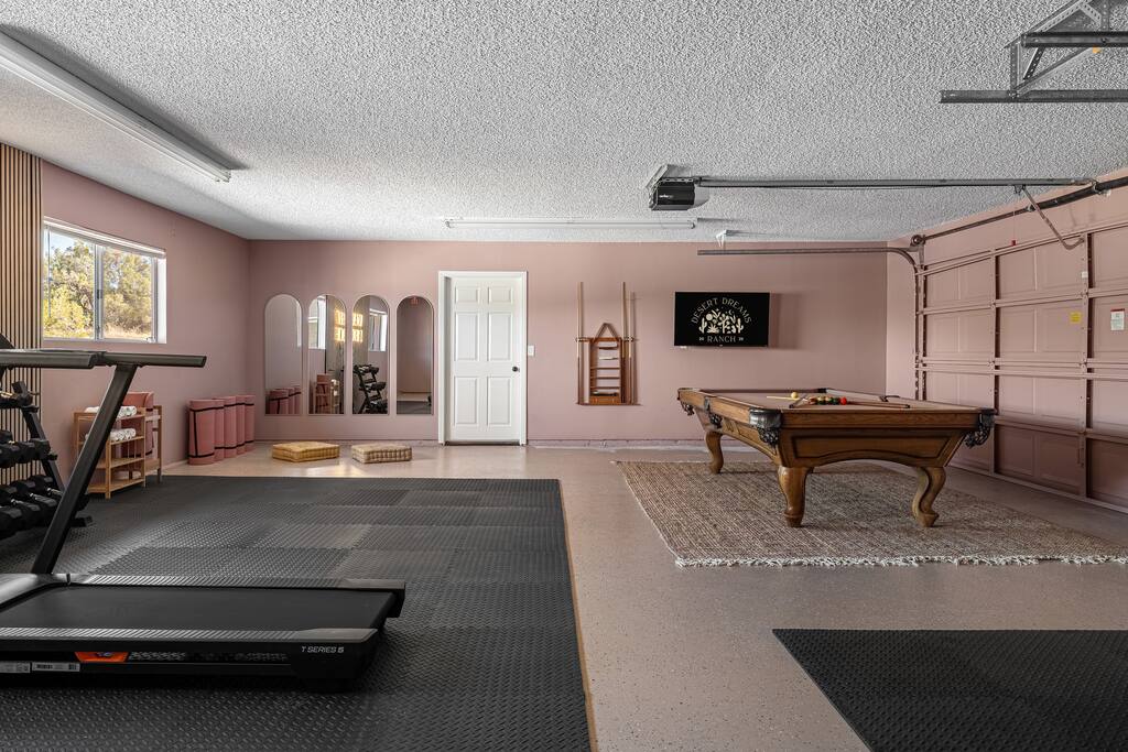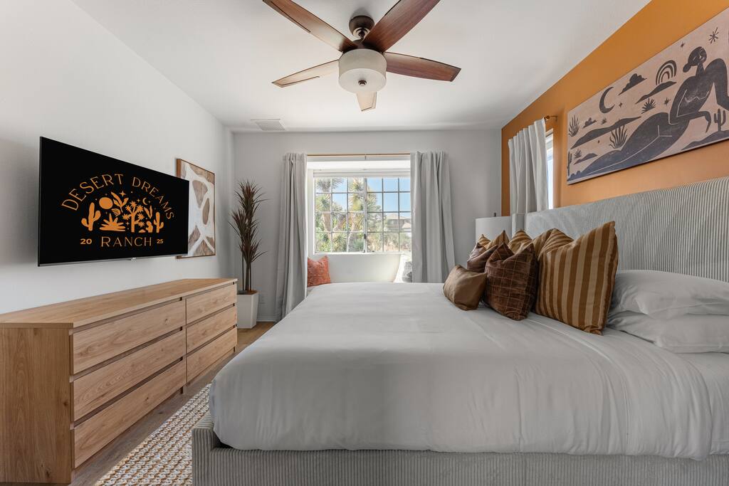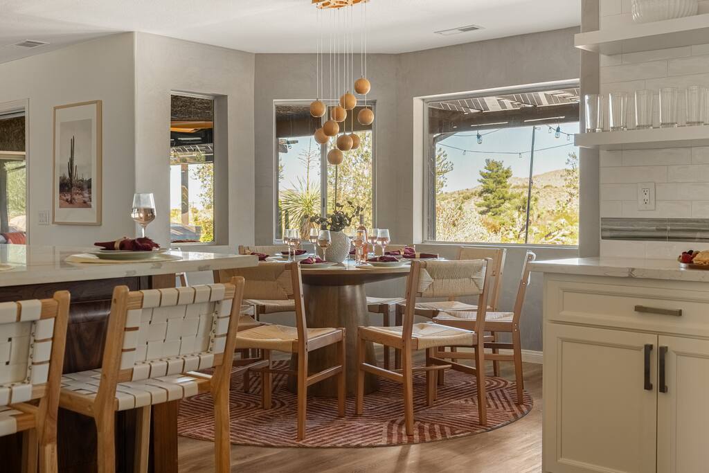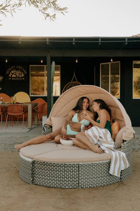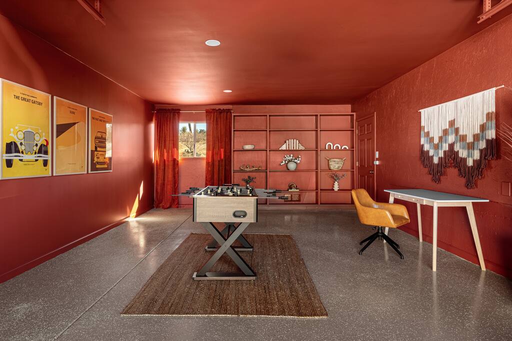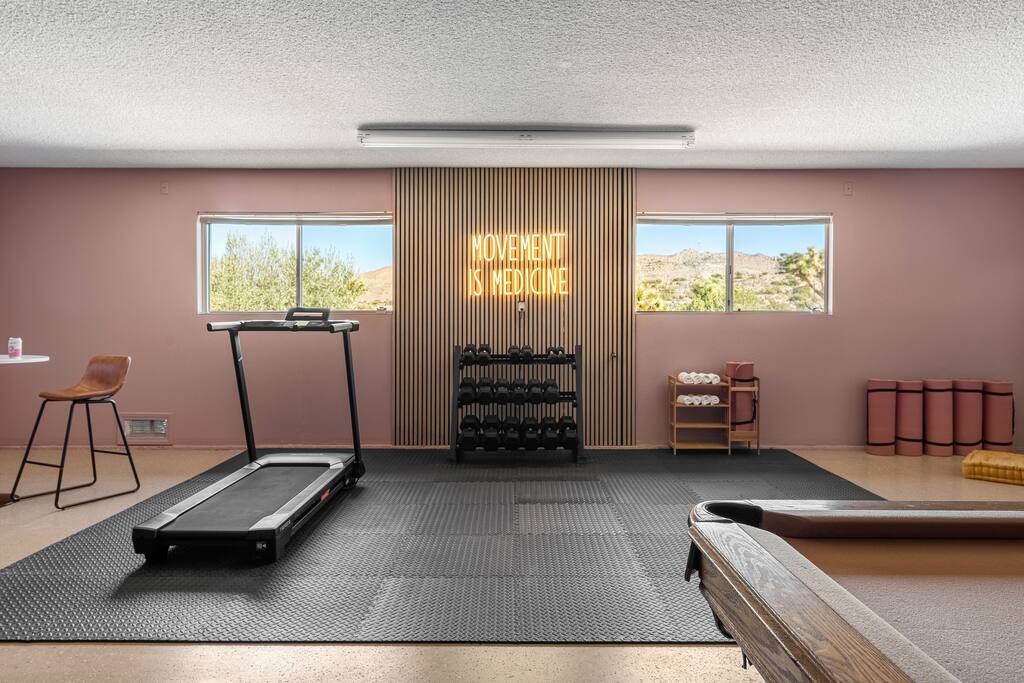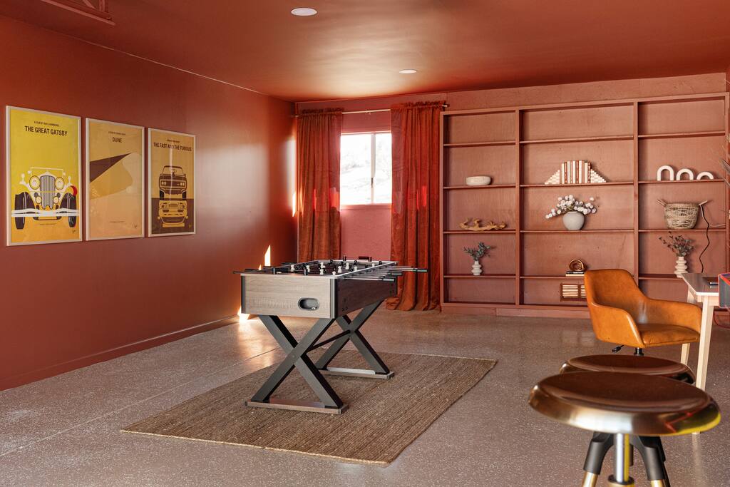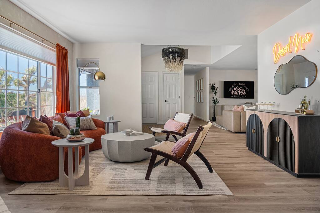 Welcome to Desert Dreams Ranch, a private 3+ acre Joshua Tree getaway just 5 minutes from trailheads. Relax in the hot tub and sauna, lounge on outdoor daybeds, or dine under the stars. Inside, enjoy a theater room, game room, and gym. The perfect blend of comfort, adventure, and desert serenity.