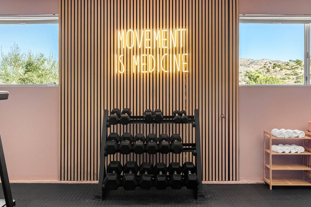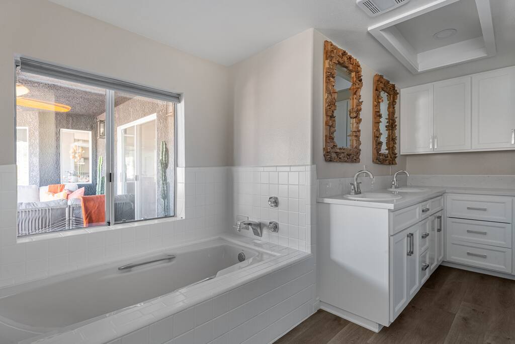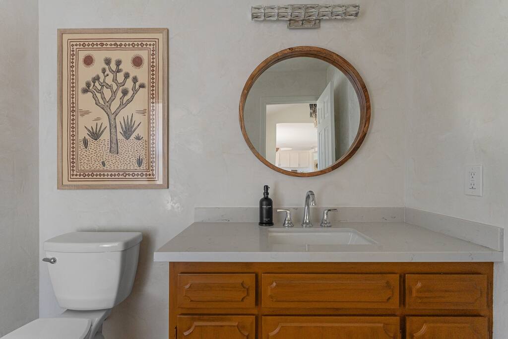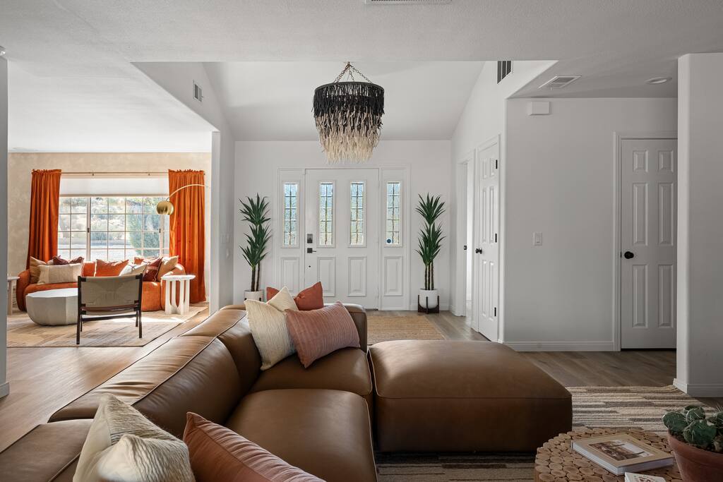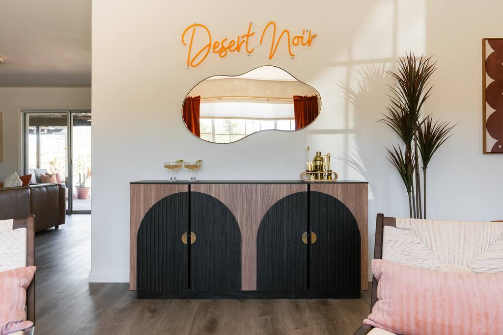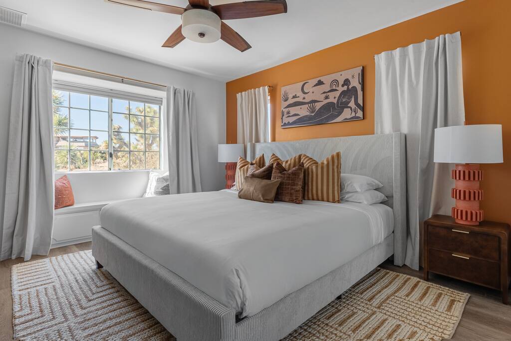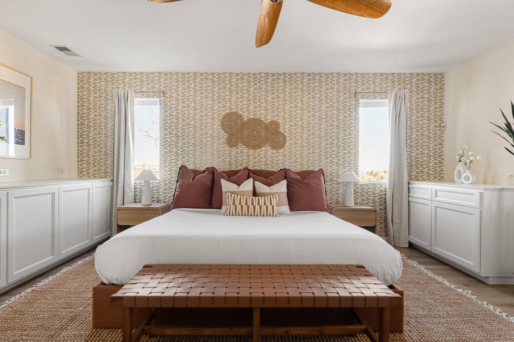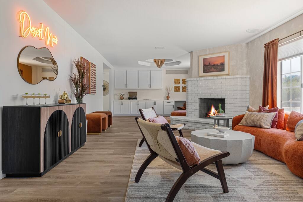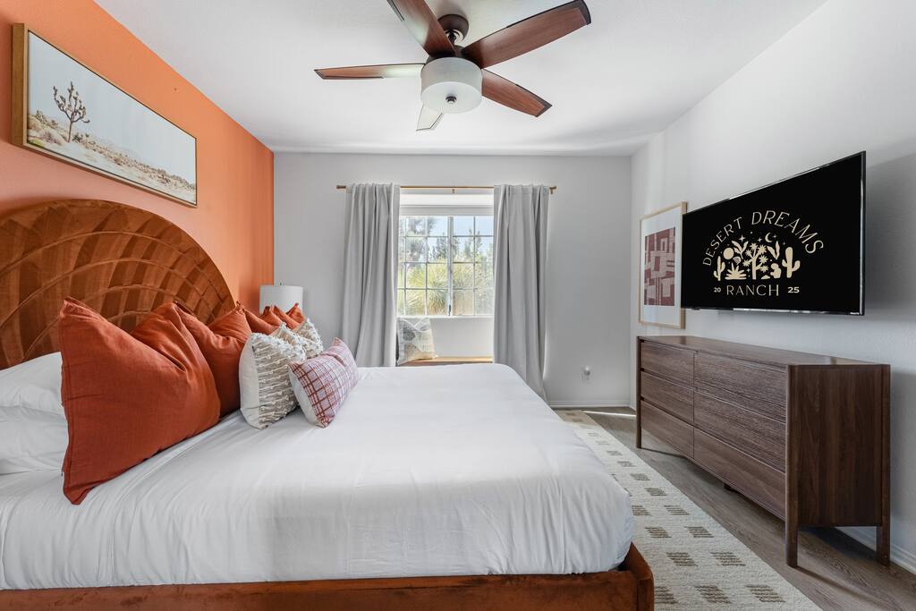 Welcome to Desert Dreams Ranch, a private 3+ acre Joshua Tree getaway just 5 minutes from trailheads. Relax in the hot tub and sauna, lounge on outdoor daybeds, or dine under the stars. Inside, enjoy a theater room, game room, and gym. The perfect blend of comfort, adventure, and desert serenity.